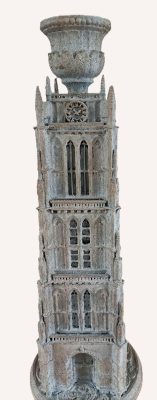 Overzicht3D toren van Zalbommel kandelaar, uniek model uitgevoerd in betonlook